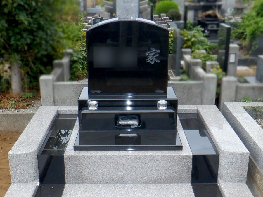 インド産の黒御影石 PTKで墓石と脇の石。