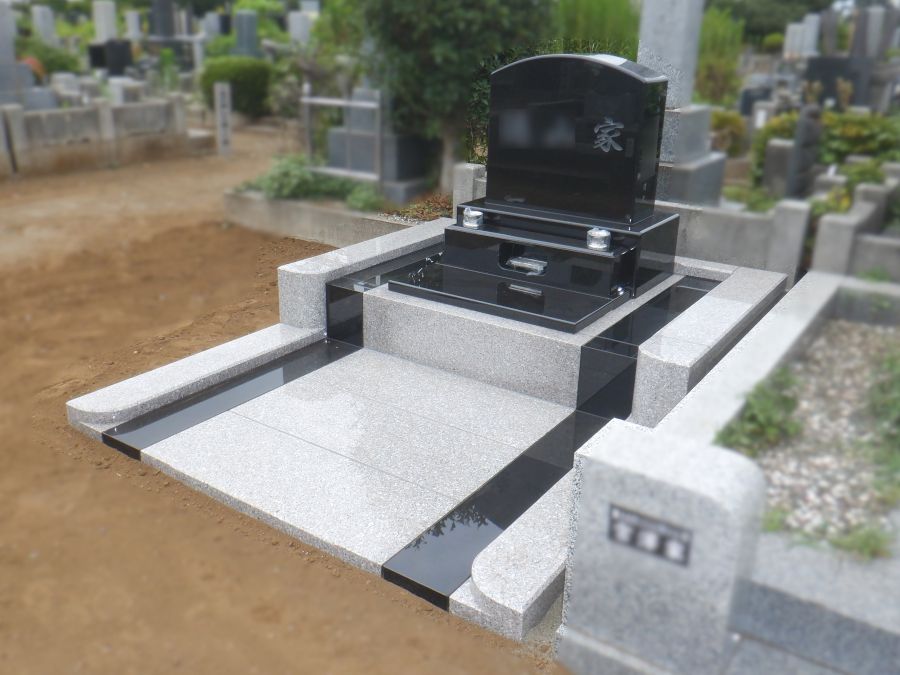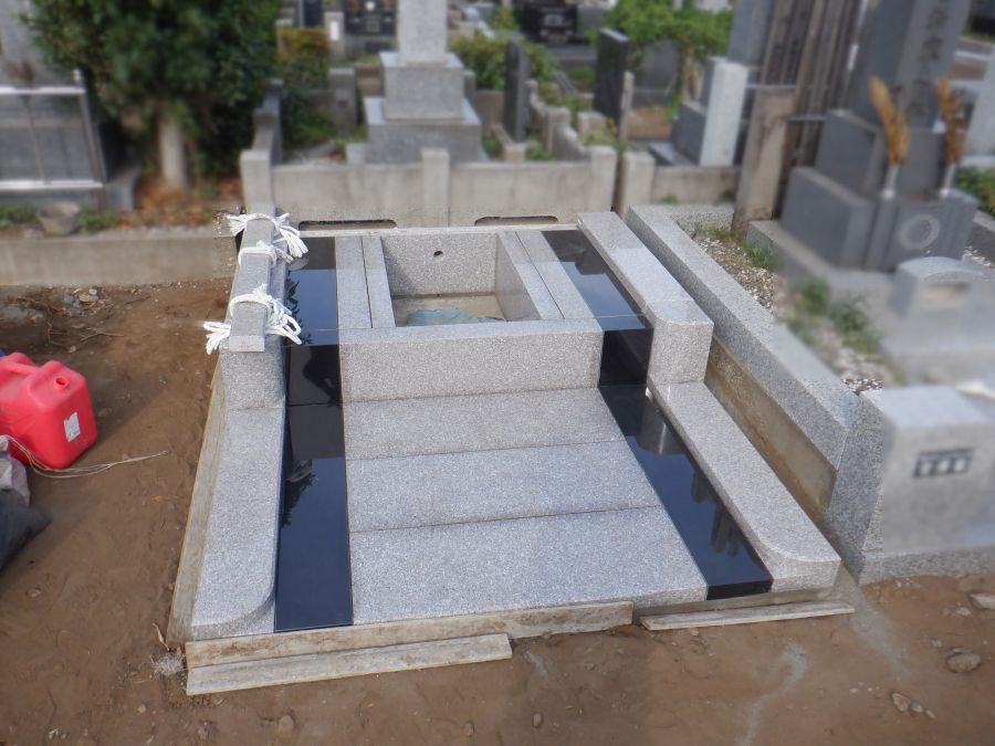 八柱霊園 新規墓所 建立 インド産黒御影石PTK:中国産ローズピンク