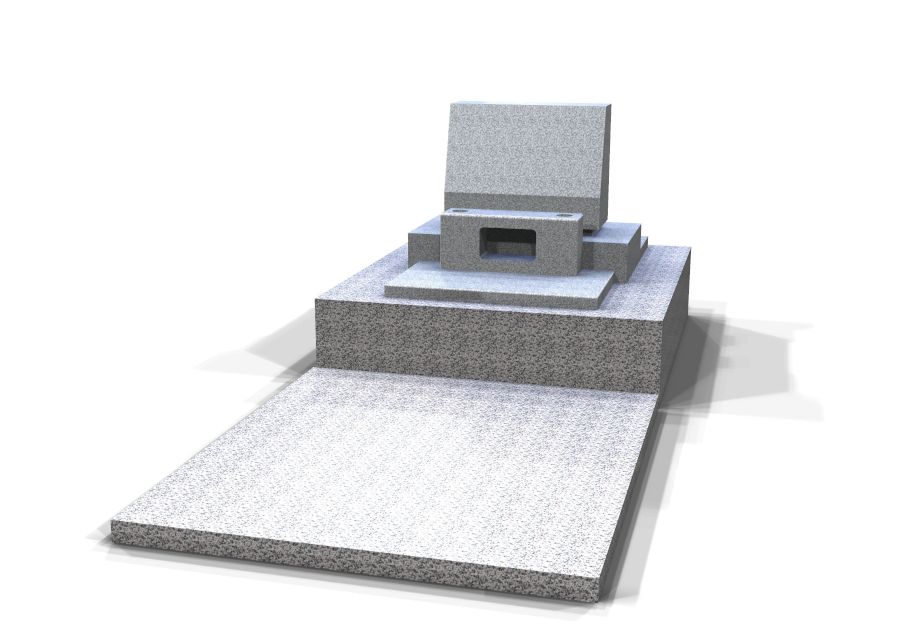 ご提案した図面です。今回お客様が当選されたのは、約3.0㎡という谷中霊園の再公募の中では比較的広く、希少な区画でした。お客様は、「費用を抑えつつ、とにかくシンプルに」「直線的なデザインが良い」と明確なご希望をお持ちでした。手前側も広く使ってフラットな形でよいとのことで、すっきりしたデザインをご提案、こちらを気に入っていただいて、当店に工事をお任せいただきました。