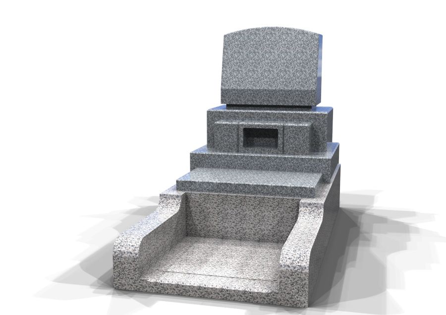 香炉と花立は独立型になっています。また、今回はお客様のご希望で、水が溜まって汚れがたまるのを避けたいということから、水鉢を設けないシンプルな造りにしました。