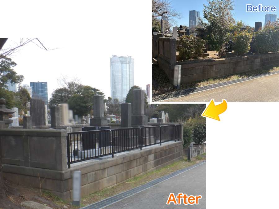 青山霊園  洗い出し仕上げ等(墓誌・納骨室増設・フェンス設置)